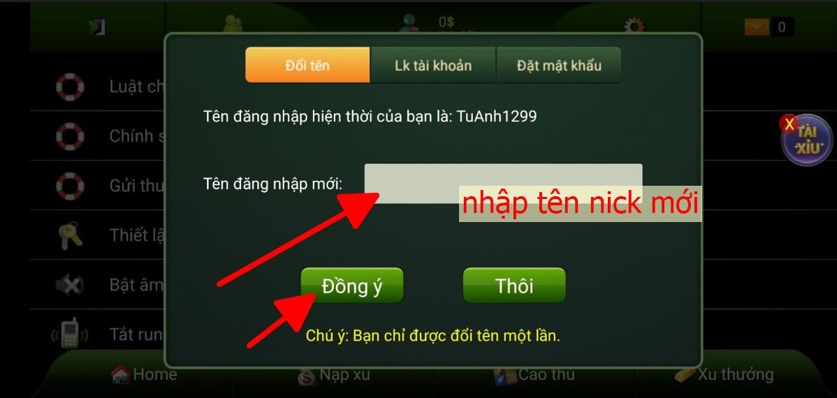 Admin xin hướng dẫn cách "Đổi tên nick" và "Đặt mật khẩu" làm như sau: