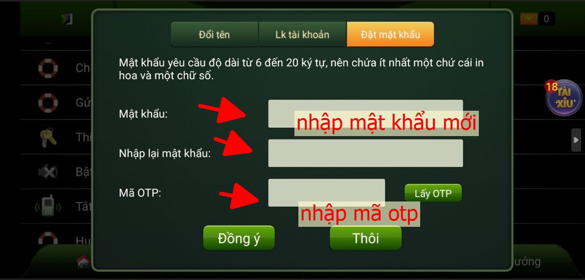 Admin xin hướng dẫn cách "Đổi tên nick" và "Đặt mật khẩu" làm như sau: